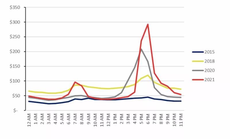 隨著越來越多的太陽能并入系統(tǒng),我們很可能會看到中午的價格甚至更低,而在晚上卻會出現(xiàn)飆升。與此同時,同一時期的高需求也推動了對昂貴網(wǎng)絡(luò)容量的需求。