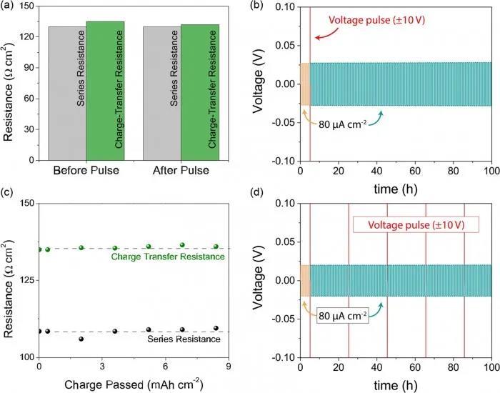 電壓脈沖可以讓電流包圍并消除空隙,從而在材料接口處形成更廣泛的接觸。更棒的是,這套方案對(duì)于電池本身也沒(méi)有不利影響。