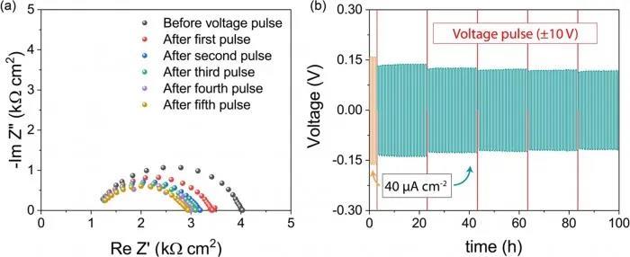 研究配圖 - 5:全電池在室溫條件下接受電壓脈沖循環(huán)后的 EIS 光譜