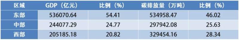 表1 2019年?yáng)|、中、西部地區(qū)經(jīng)濟(jì)總量和碳排放總量及占比
