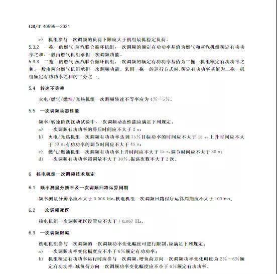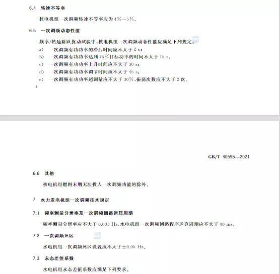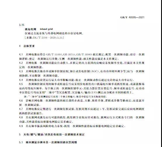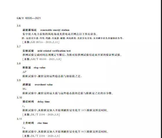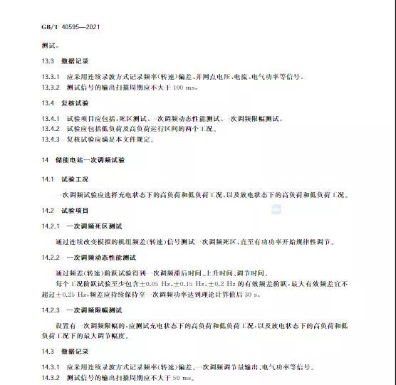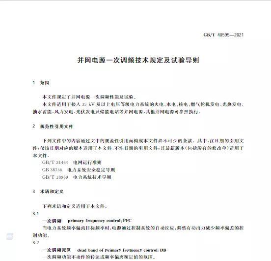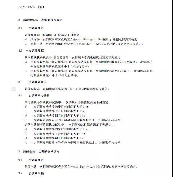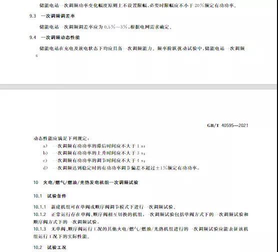 中國儲能網(wǎng)訊:10月11日,國家標準《并網(wǎng)電源一次調(diào)頻技術(shù)規(guī)定及試驗導(dǎo)體》GB/T 40595-2021正式發(fā)布并且于2022年5月1日起正式實施。文件明確:接入35kV及以上電壓等級的儲能電站、風(fēng)電、光伏等并網(wǎng)電源要按照該文件執(zhí)行。其中儲能電站一次調(diào)頻動態(tài)性能應(yīng)滿足下列規(guī)定: