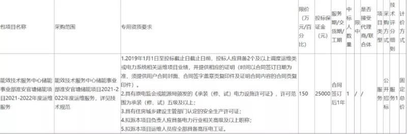 淮安官塘儲能項目2021-2022年度運維服務(wù)招標(biāo)公告