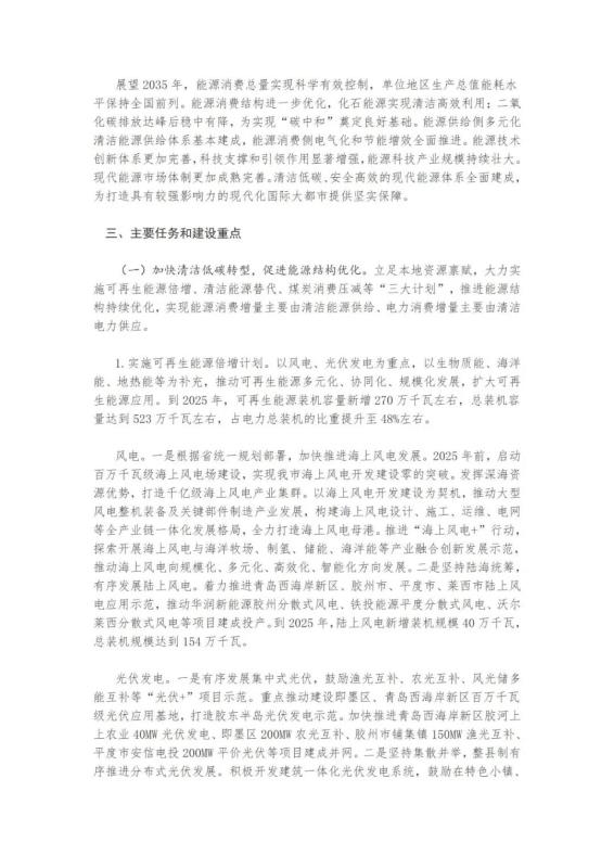 中國儲(chǔ)能網(wǎng)訊:近日,山東青島市人民政府辦公廳印發(fā)了《關(guān)于印發(fā)青島市“十四五”能源發(fā)展規(guī)劃的通知》。提出了青島市“十四五”能源發(fā)展的主要任務(wù)和建設(shè)重點(diǎn)。實(shí)施可再生能源倍增計(jì)劃。以風(fēng)電、光伏發(fā)電為重點(diǎn),以生物質(zhì)能、海洋能、地?zé)崮艿葹檠a(bǔ)充。到2025年,可再生能源裝機(jī)容量新增270萬千瓦左右,總裝機(jī)容量達(dá)到523萬千瓦左右,占電力總裝機(jī)的比重提升至48%左右。