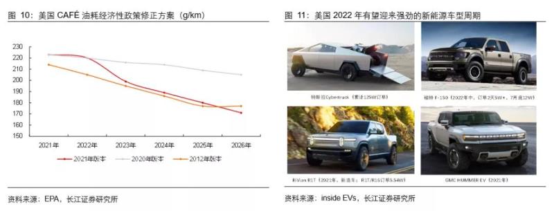 僅考慮CAFé油耗經(jīng)濟(jì)性考核和車(chē)型周期,預(yù)計(jì)2022年美國(guó)將達(dá)到130-140萬(wàn)輛,同比翻倍以上增長(zhǎng),若稅收抵免政策落地,有望帶動(dòng)需求進(jìn)一步超預(yù)期。
