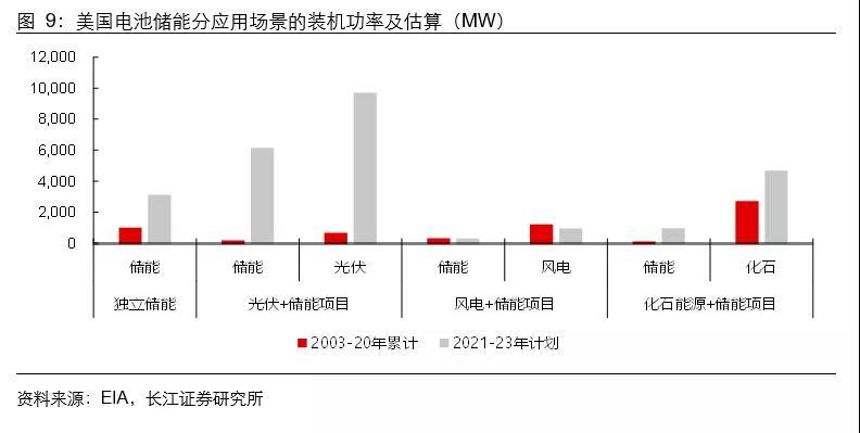 美國(guó)儲(chǔ)能集中于表前市場(chǎng)(電網(wǎng)側(cè)、發(fā)電側(cè)),主要有電網(wǎng)側(cè)RA合同(容量合同)和發(fā)電側(cè)PPA模式(光伏+儲(chǔ)能)兩種商業(yè)模式。根據(jù)EIA的數(shù)據(jù)統(tǒng)計(jì)和預(yù)測(cè),光伏+儲(chǔ)能將成為未來(lái)美國(guó)儲(chǔ)能增長(zhǎng)的主力(未考慮本次政策),其中有一個(gè)影響因素即是美國(guó)當(dāng)前對(duì)于光伏+儲(chǔ)能的項(xiàng)目給予ITC退稅,而單獨(dú)的儲(chǔ)能項(xiàng)目則并未享受。如果本次法案針對(duì)儲(chǔ)能單獨(dú)ITC退稅政策能夠最終落地,可以預(yù)見(jiàn)的是美國(guó)電網(wǎng)側(cè)儲(chǔ)能、存量可再生能源搭配儲(chǔ)能的需求有望爆發(fā)式增長(zhǎng),美國(guó)市場(chǎng)存在進(jìn)一步超預(yù)期可能。