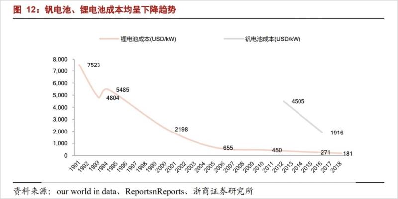釩電池和鋰電池的成本趨勢