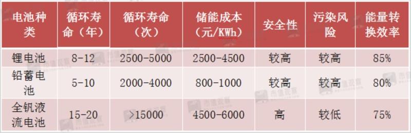 相比于鈉硫電池和鋰離子電池,釩液流電池容量更大、更安全環(huán)保、循環(huán)壽命更長、能量轉(zhuǎn)換效率高,早在十幾年前就它被認為是儲能中的“希望之星”,是未來儲能技術(shù)的首選技術(shù)。