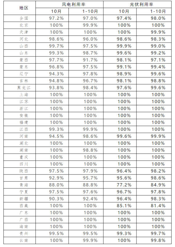 中國儲能網(wǎng)訊:2021年1-10月,全國光伏利用率為98.0%。