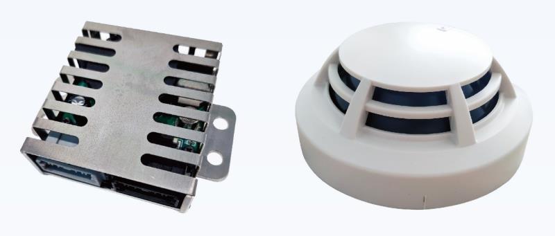 火災(zāi)探測控制器由外殼、電路板、傳感器等組成??稍O(shè)定報警閾值,監(jiān)測pack內(nèi)的一氧化碳濃度、煙霧濃度和溫度,當(dāng)環(huán)境參數(shù)達到報警閾值,控制器將告警開關(guān)量反饋給檢測板,同時控制聲光蜂鳴器進行聲光提示,火災(zāi)探測控制器具備自檢功能,可通過聲光報警或干接點實時反饋自身運行狀態(tài)。