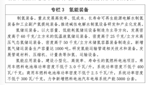 (三)氫能裝備。搶抓氫能產(chǎn)業(yè)進(jìn)入市場(chǎng)化臨界點(diǎn)戰(zhàn)略性機(jī)遇,依托豐富的能源資源和氫能應(yīng)用場(chǎng)景,強(qiáng)化氫能裝備技術(shù)創(chuàng)新,重點(diǎn)發(fā)展電解水制氫裝備、工業(yè)副產(chǎn)氫提純裝備、氫能儲(chǔ)運(yùn)裝備、氫燃料電池等裝備制造業(yè),實(shí)現(xiàn)氫能裝備制造新突破。