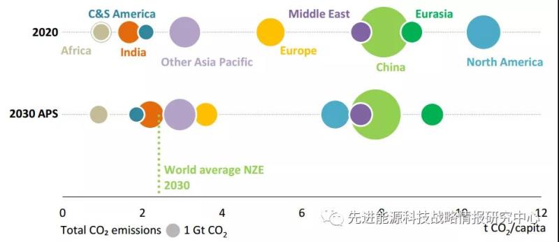 當(dāng)前全球還有數(shù)億人無(wú)法獲得最基本的現(xiàn)代能源。除中國(guó)之外的新興市場(chǎng)和發(fā)展中經(jīng)濟(jì)體占當(dāng)今全球人口的三分之二,到2050年將占世界人口增量(20億)的絕大部分,新興市場(chǎng)和發(fā)展中經(jīng)濟(jì)體對(duì)全球能源發(fā)展趨勢(shì)將起重要作用。關(guān)鍵清潔能源技術(shù)成本下降為新興市場(chǎng)和發(fā)展中經(jīng)濟(jì)體發(fā)展低碳能源提供了重要機(jī)會(huì),但還未表現(xiàn)出終端用能部門(mén)跨越式采用低碳技術(shù)的趨勢(shì)。在既定政策情景下,到2030年新興市場(chǎng)和發(fā)展中經(jīng)濟(jì)體石油需求較2020年將增加1200萬(wàn)桶/天(增長(zhǎng)近30%),天然氣需求將增加5200億立方米(增長(zhǎng)近25%),煤炭需求將增加1.6億噸(增長(zhǎng)4%);而發(fā)達(dá)國(guó)家對(duì)化石燃料的需求將下降。中國(guó)目前在可再生能源基礎(chǔ)設(shè)施建設(shè)方面處于全球領(lǐng)先地位,越來(lái)越多的新興市場(chǎng)和發(fā)展中經(jīng)濟(jì)體也相繼進(jìn)行了部署示范。既定政策情景中,到2030年可再生能源占新興市場(chǎng)和發(fā)展中經(jīng)濟(jì)體(不包括中國(guó))新增電力裝機(jī)容量的三分之二,而目前這一比例約為50%。在既定政策情景下,新興市場(chǎng)和發(fā)展中經(jīng)濟(jì)體的電力需求將快速增長(zhǎng),這主要是由于工業(yè)部門(mén)電機(jī)和電器擁有量的增加。綜上所述,新興市場(chǎng)和發(fā)展中經(jīng)濟(jì)體將對(duì)未來(lái)幾十年內(nèi)CO2排放量的增長(zhǎng)至關(guān)重要。在既定政策情景下,到2050年新興市場(chǎng)和發(fā)展中經(jīng)濟(jì)體(不包括中國(guó))的碳排放量將增加55億噸,其中工業(yè)和交通部門(mén)碳排放量增幅最大;相比之下,發(fā)達(dá)經(jīng)濟(jì)體碳排放量將減少37億噸,中國(guó)將減少30億噸。在承諾目標(biāo)情景下,碳排放量差別更為顯著。盡管新興市場(chǎng)和發(fā)展中經(jīng)濟(jì)體中只有小部分國(guó)家承諾凈零排放,但應(yīng)注意到該地區(qū)(不包括中國(guó))的人均碳排放遠(yuǎn)低于發(fā)達(dá)國(guó)家,承諾目標(biāo)情景中到2030年其人均排放量不到發(fā)達(dá)經(jīng)濟(jì)體平均水平的一半。