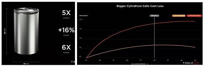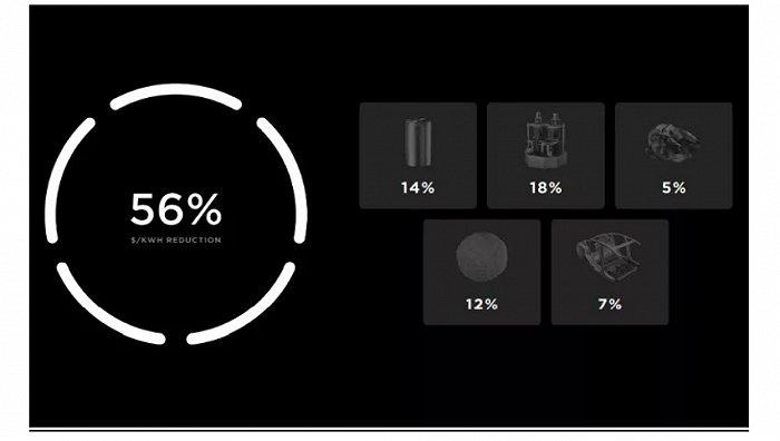 特斯拉從電池設(shè)計、制造工藝、材料體系等方面尋找降本的機會,如果這些創(chuàng)新都成為現(xiàn)實,特斯拉鋰電池的續(xù)航里程將增長54%,成本將下降56%,投資額度將下降69%。