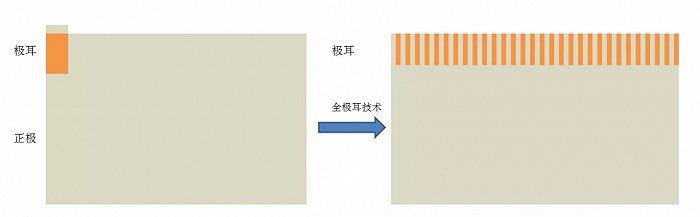 具體到電池充放電過程,電子是在橫穿整個電芯之后到達(dá)與電芯集流體焊接的極耳,再通過外部導(dǎo)線到達(dá)另一極。在電池工作中,電子的流動極易導(dǎo)致極耳焊接接處局部熱量過大,加之接觸點小,沒有足夠散熱空間,這一直是電池安全的瓶頸,當(dāng)前的快充也受制于極耳。