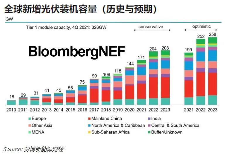 高價的成因可能是庫存的累積和硅片制造商為確保多晶硅的供應(yīng)互相間競爭。2022年將大幅新增光伏裝機容量,包括2021年的延期項目。