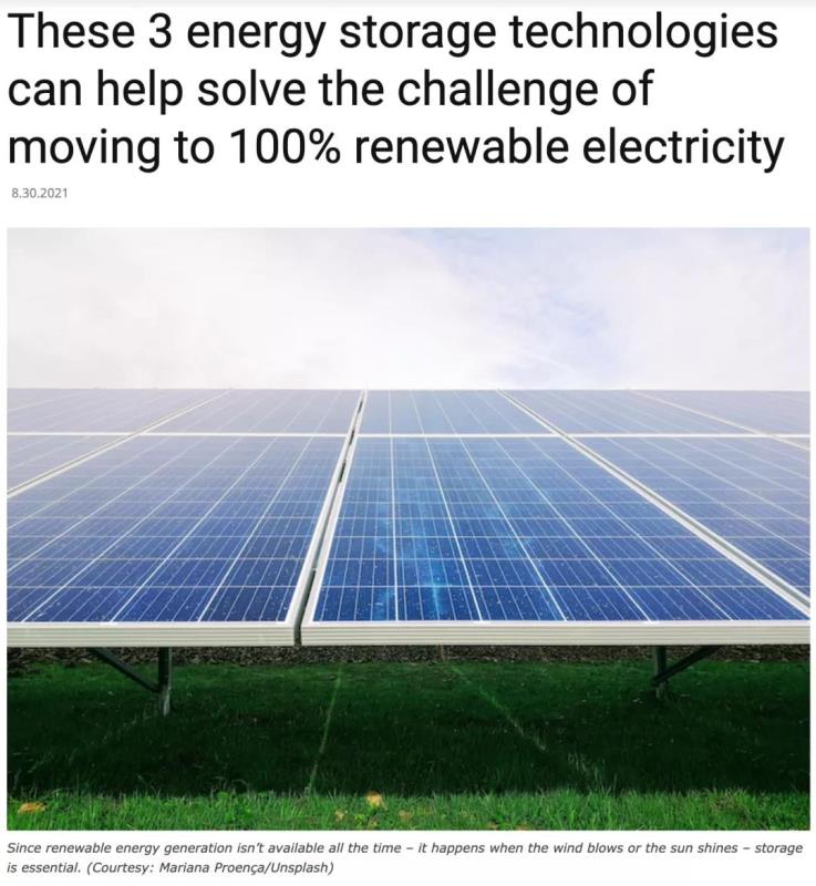 中國儲能網(wǎng)訊:美國國家可再生能源實(shí)驗(yàn)室(NREL)研究員Kerry Rippy發(fā)表文章,題目是:These 3 energy storage technologies can help solve the challenge of moving to 100% renewable electricity(這三種儲能技術(shù)突破有助于解決向100%可再生電力轉(zhuǎn)變)。