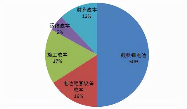 根據(jù)彭博新能源財(cái)經(jīng)數(shù)據(jù)顯示,2020年酸鐵鋰電池成本約占總成本的比例為50%,電池配套設(shè)備成本約占總成本的比例為16%,施工成本約占總成本的比例為17%,運(yùn)維成本約占總成本的比例為5%,財(cái)務(wù)成本約占總成本的比例為12%。