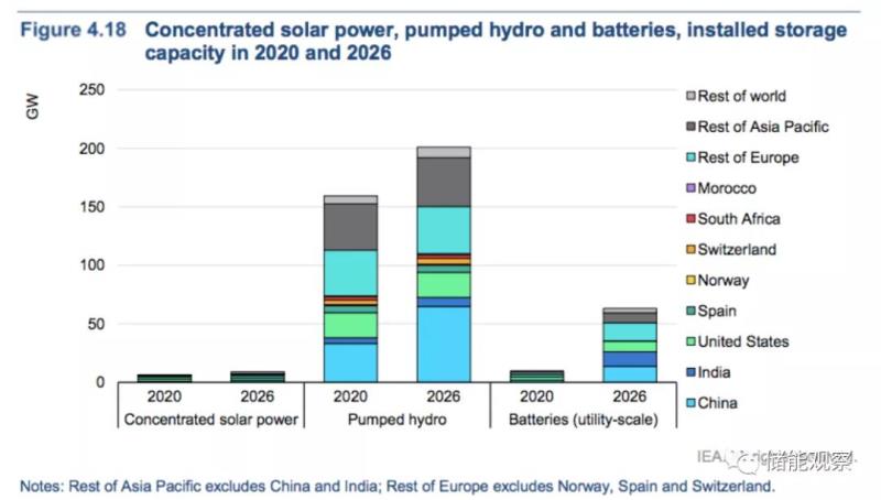 IEA報告指出,PSH和CSP儲能可以安裝在已建成的電站或項目中,而不是新建項目,這提供了高成本效益的機會,將加速其存儲能力。目前,全球約有一半的CSP電站項目沒有任何存儲能力,尤其是在西班牙和美國。