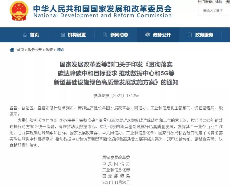 中國儲能網(wǎng)訊:近日,國家發(fā)展改革委、中央網(wǎng)信辦、工業(yè)和信息化部、國家能源局聯(lián)合發(fā)布《貫徹落實(shí)碳達(dá)峰碳中和目標(biāo)要求 推動(dòng)數(shù)據(jù)中心和5G等新型基礎(chǔ)設(shè)施綠色高質(zhì)量發(fā)展實(shí)施方案》的通知。通知要求: