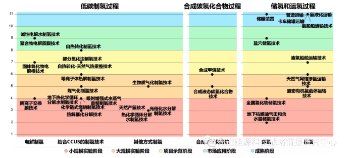 圖1 制氫、儲(chǔ)氫、運(yùn)氫過程技術(shù)成熟度