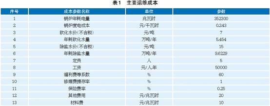 調(diào)峰電量及調(diào)峰補(bǔ)貼電價(jià)。項(xiàng)目運(yùn)行時(shí)間按照某市采暖期233天,每天調(diào)峰7小時(shí)考慮。第一檔調(diào)峰電量3400兆瓦時(shí),第二檔調(diào)峰電量34890兆瓦時(shí)(達(dá)到東北電網(wǎng)調(diào)峰深度要求的調(diào)峰電量);第一檔調(diào)峰電價(jià)補(bǔ)貼0.3元/千瓦時(shí),第二檔調(diào)峰電價(jià)補(bǔ)貼0.8元/千瓦時(shí),加權(quán)平均調(diào)峰電價(jià)補(bǔ)貼0.795元/千瓦時(shí)。主要運(yùn)維成本見表1。