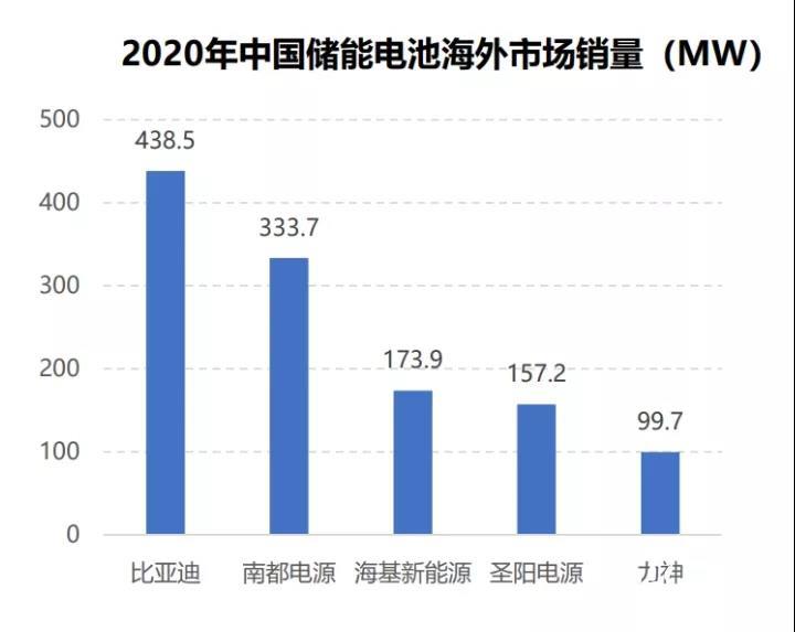 四、2020年中國儲能電池海外市場銷量: