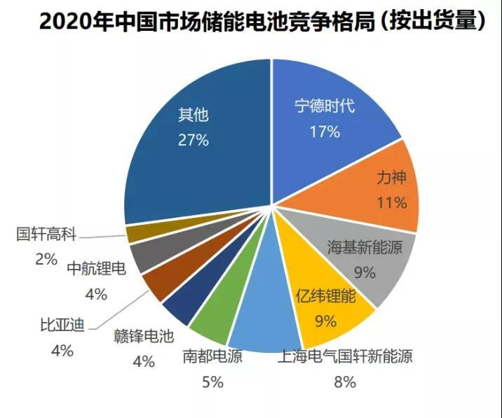 三、2020年中國市場儲能電池競爭格局(按出貨量)