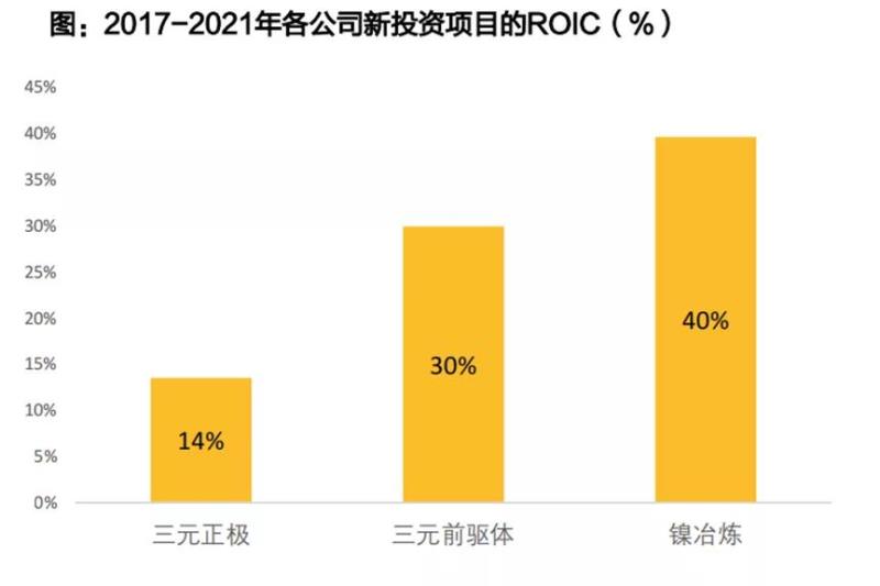 在正極產(chǎn)業(yè)鏈條中,鎳資源無疑是利潤最豐厚的環(huán)節(jié),其次便是三元前驅(qū)體,從資本回報率(ROIC)可以清晰看出三者的差異。