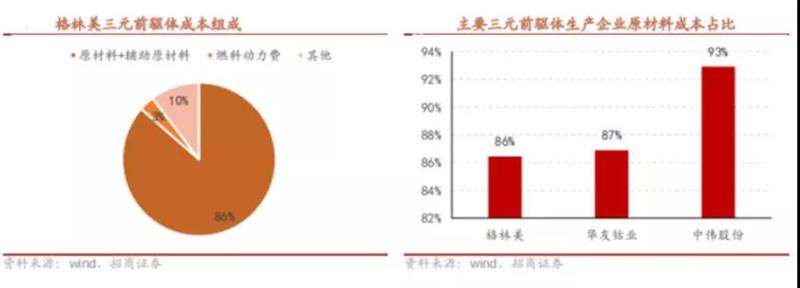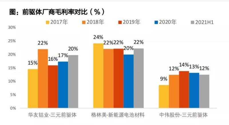 從前驅(qū)體各廠商的毛利率來看,格林美具備著明顯的優(yōu)勢。