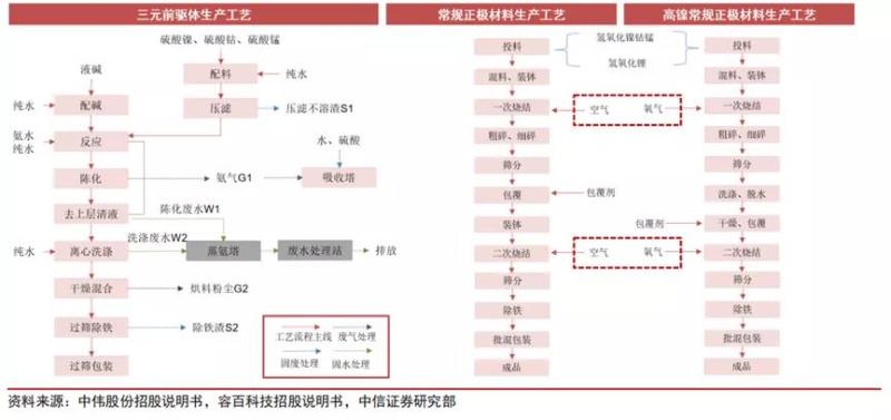 三元前驅(qū)體是三元正極材料的前一道工序,三元正極材料的生產(chǎn)過程就是將三元前驅(qū)體與碳酸鋰/氫氧化鋰混合后燒結(jié)制成。