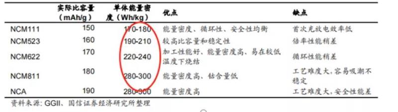 目前國內(nèi)的三元鋰電池能量密度可達200Wh/kg以上,而磷酸鐵鋰電池能量密度上限約為180Wh/kg。