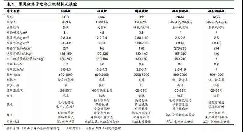 細分起來,正極材料有五大類,主要包括磷酸鐵鋰(LFP)、鎳鈷錳酸鋰(三元材料、NCM)、錳酸鋰、鈷酸鋰、鎳鈷鋁酸鋰。