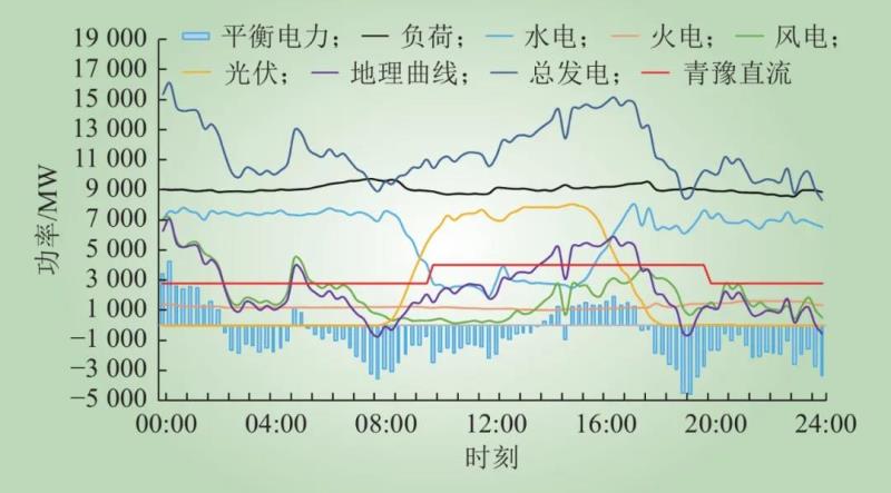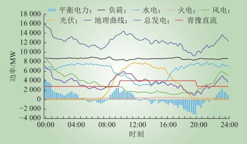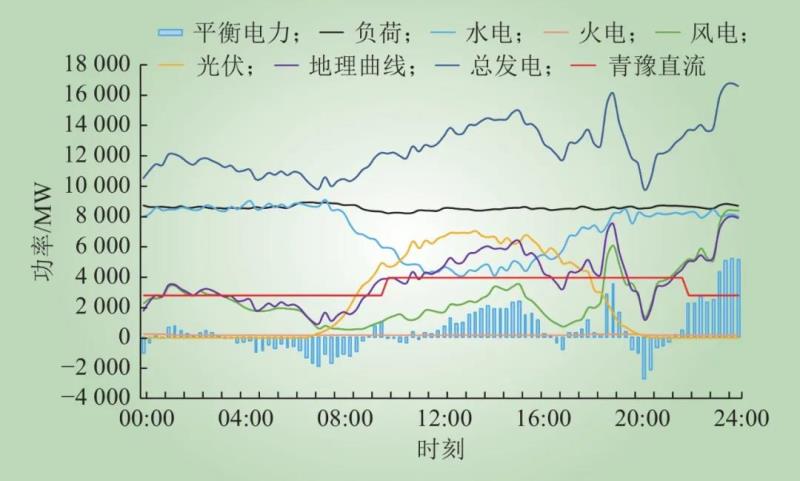 Fig.8 Typical daily power balance curve of Qinghai Grid in the renewable energy enrichment period