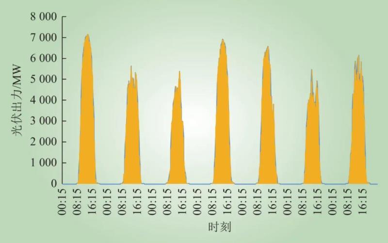 圖2 青海電網(wǎng)連續(xù)一周太陽能出力間歇性示意