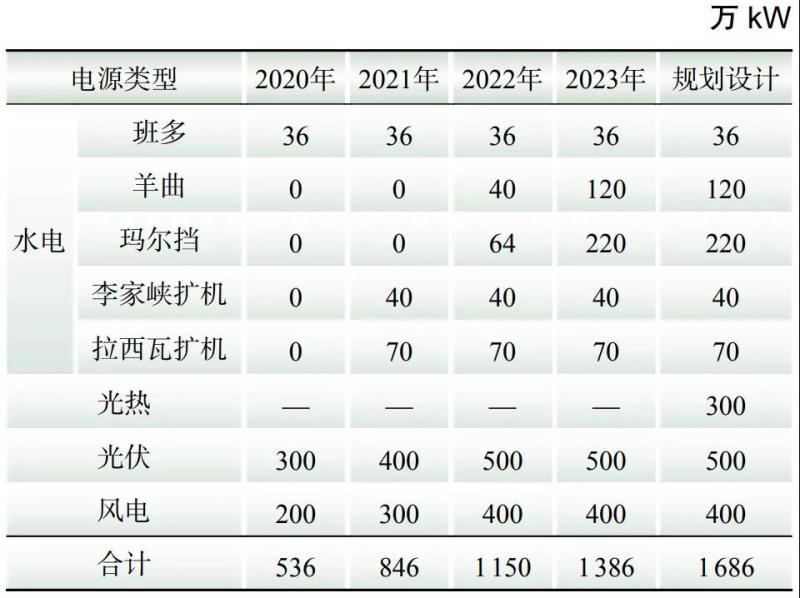 由于多種原因,配套電源建設和投產(chǎn)存在滯后情況,如表1所示,拉西瓦擴機預計于2021年9月投產(chǎn),李家峽擴機預計于2021年12月投產(chǎn),羊曲水電站和瑪爾擋水電站機組預計于2022—2023年陸續(xù)投產(chǎn)。光熱項目投產(chǎn)時間尚不確定[12]。