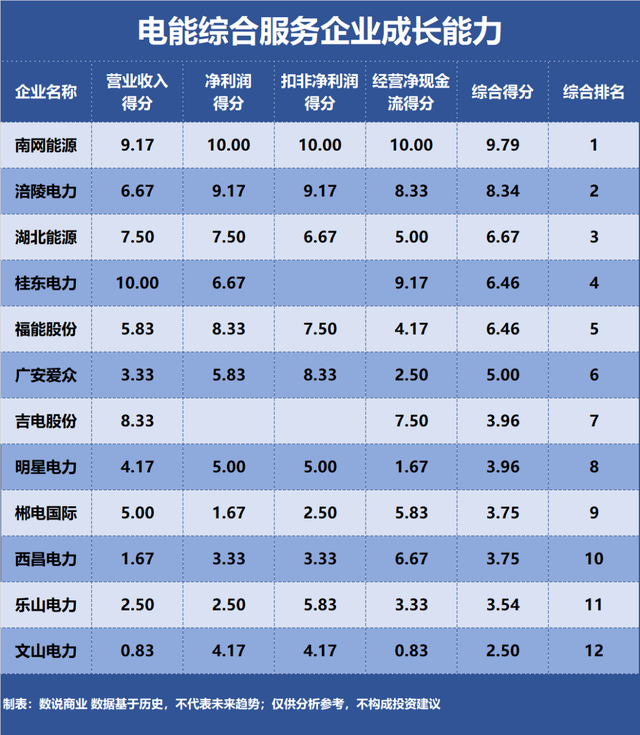 注:成長能力榜單中,各項指標得分按照10/12的比例換算得出,綜合得分為各項指標的平均值。如某個指標有數(shù)值,但沒有得分(即表格為空格),則該指標權重會下降。