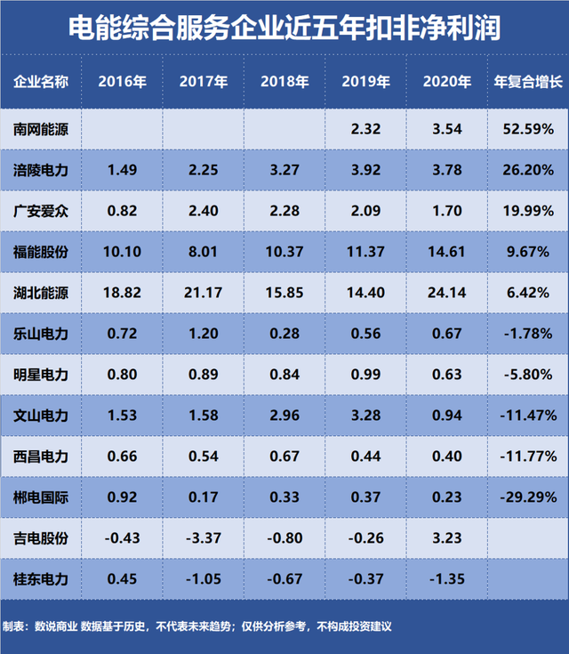 從近五年扣非凈利潤復合增長來看,南網(wǎng)能源、涪陵電力、廣安愛眾等3家企業(yè)增幅超過兩位數(shù),其中涪陵電力復合增長達到26.20%。