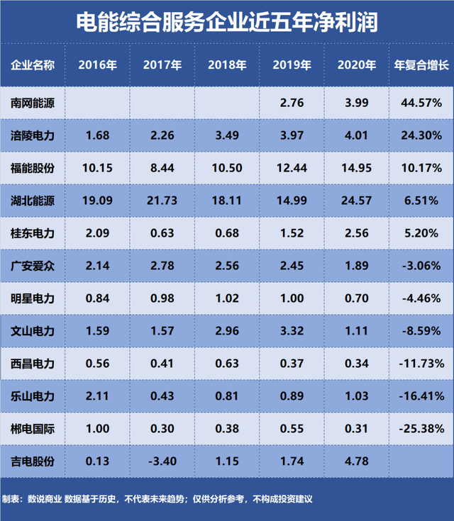 從近五年凈利潤復合增長來看,南網(wǎng)能源、涪陵電力、福能股份等3家企業(yè)增幅超過兩位數(shù),其中南網(wǎng)能源復合增長達到44.57%。