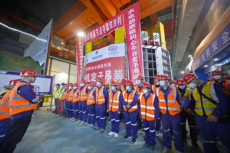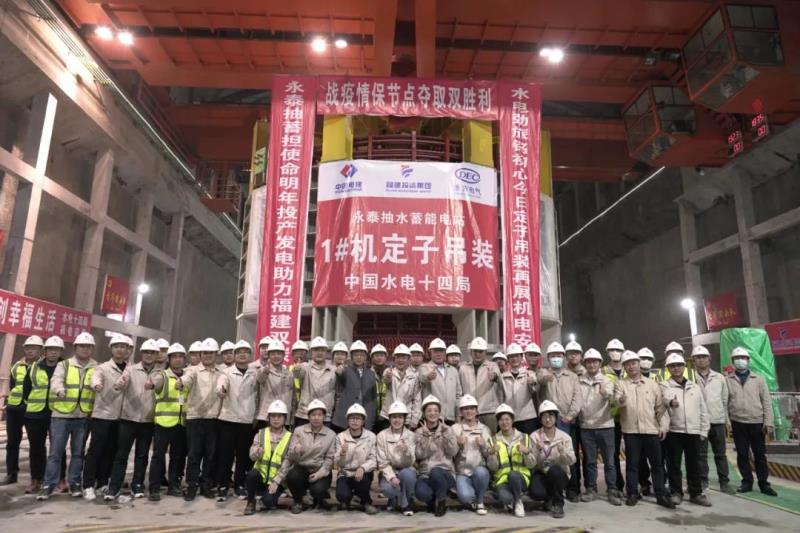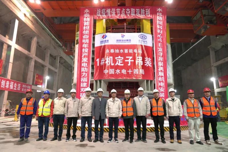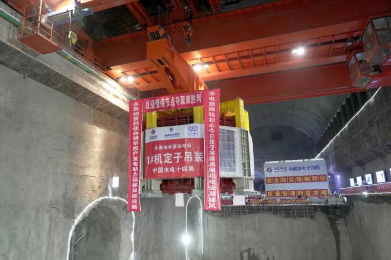 中國儲能網(wǎng)訊:12月15日上午11點08分,永泰抽水蓄能電站首臺機組定子安全、平穩(wěn)、精準吊入機坑,順利完成吊裝工作。