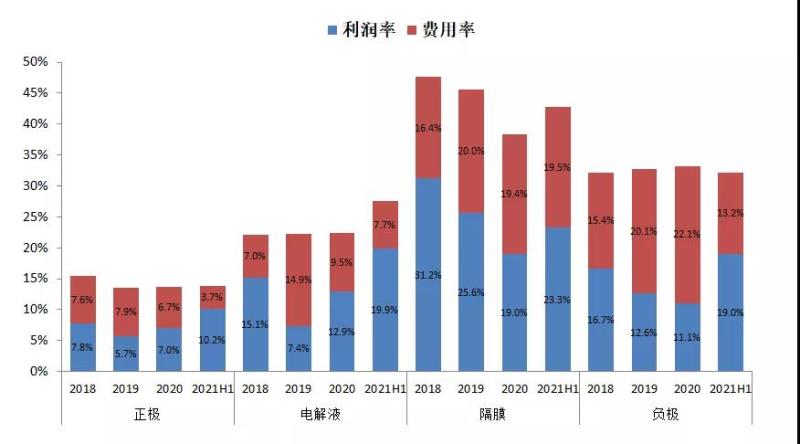 圖11:動(dòng)力電池四大材料利潤(rùn)率和費(fèi)用率情況,資料來(lái)源:中國(guó)化學(xué)與物理電源行業(yè)協(xié)會(huì)動(dòng)力電池應(yīng)用分會(huì)