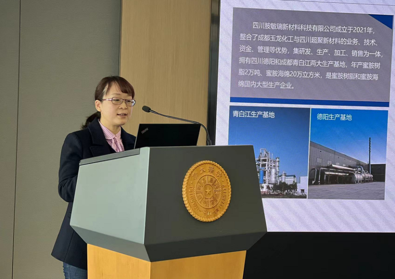 四川胺敏瑞新材料科技有限公司技術(shù)總監(jiān)朱小蘭介紹了蜜胺海綿在鋰電池安全節(jié)能的應(yīng)用情況。