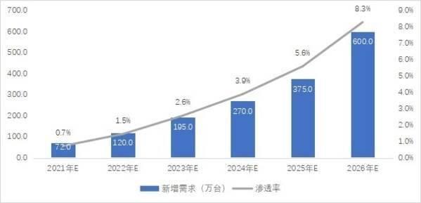 便攜式儲(chǔ)能在其他領(lǐng)域的新增需求及滲透率預(yù)測(cè):萬臺(tái)