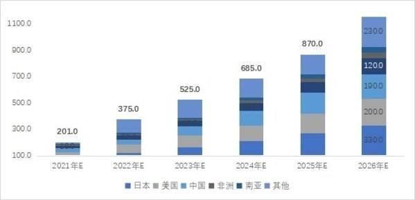 從不同地區(qū)需求數(shù)量來看,由于地區(qū)特殊性以及消費(fèi)習(xí)慣的養(yǎng)成,應(yīng)急用電領(lǐng)域仍然以日本為主,隨著市場(chǎng)滲透率的提升,預(yù)計(jì)2026年,日本應(yīng)急用電領(lǐng)域新增需求將會(huì)達(dá)到330萬臺(tái),美國新增需求約為200萬臺(tái),中國和歐洲的新增需求分別達(dá)到190萬臺(tái)和120萬臺(tái),而非洲和南亞等國家的新增需求可能達(dá)到40萬臺(tái)以上,除此之外,其他國家和地區(qū)對(duì)應(yīng)急領(lǐng)域的新增需求也將超過230萬臺(tái)。
