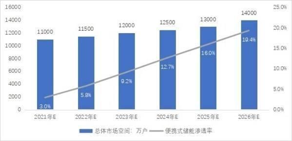 便攜式儲(chǔ)能總體市場(chǎng)滲透率預(yù)測(cè)
