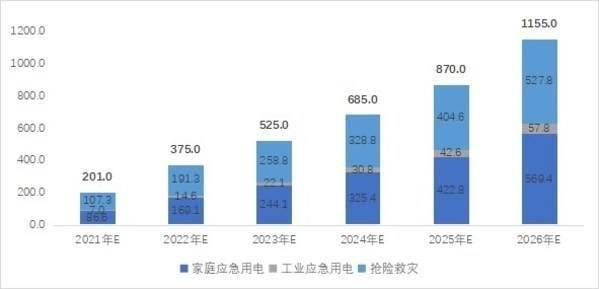 以災(zāi)害高發(fā)的日本為例,2018年9月發(fā)生的北海道東部地震致使整個(gè)北海道停電,停電導(dǎo)致的直接經(jīng)濟(jì)損失超1,500億日元2018年9月臺(tái)風(fēng)“潭美”導(dǎo)致沖繩縣內(nèi)超過70,000戶家庭停電便攜儲(chǔ)能產(chǎn)品能解決災(zāi)害缺電、停電、應(yīng)急救援等電力短缺問題,并能與太陽能板組合形成小型太陽能發(fā)電系統(tǒng),在災(zāi)后電網(wǎng)癱瘓及毀壞情況下,為災(zāi)后生活實(shí)現(xiàn)持續(xù)離網(wǎng)發(fā)電,保障災(zāi)民的基本生活需求,2019年日本防災(zāi)協(xié)會(huì)便已將便攜儲(chǔ)能產(chǎn)品列為防災(zāi)安全物資認(rèn)證產(chǎn)品未來,隨著應(yīng)急備用電源的逐步普及以及便攜儲(chǔ)能產(chǎn)品對(duì)小型燃油發(fā)電機(jī)的逐步替代,便攜儲(chǔ)能產(chǎn)品在應(yīng)急備災(zāi)市場(chǎng)的需求空間將更加廣闊預(yù)計(jì)到2026年,全球應(yīng)急領(lǐng)域新增需求將達(dá)到1155萬臺(tái)。