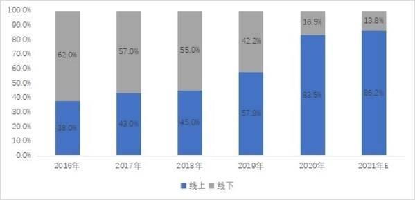 2016-2021年不同銷售渠道份額變化趨勢(shì)