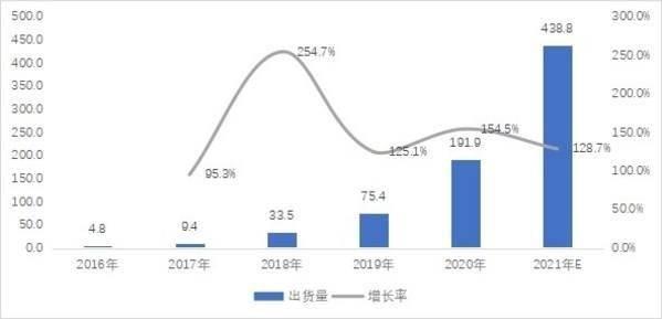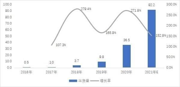2016-2021年全球便攜式儲(chǔ)能出貨量:萬臺(tái)