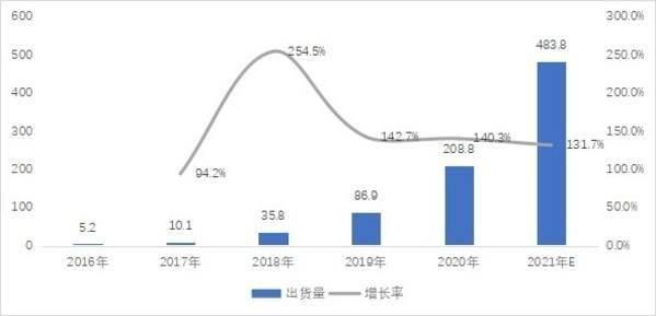 2016-2021年中國便攜式儲(chǔ)能出貨量:萬臺(tái)