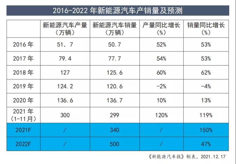 陳士華預(yù)測,2022年新能源汽車將達(dá)到500萬輛,同比增長47%。他還預(yù)測,新能源汽車全年銷量達(dá)到340萬輛,同比增長1.5倍。1.5倍是什么概念?該人士認(rèn)為,1.5倍增長意味著中國新能源汽車行業(yè)正呈現(xiàn)高歌猛進(jìn)的發(fā)展勢頭。他指出,宏觀經(jīng)濟(jì)持續(xù)穩(wěn)定恢復(fù)、宏觀政策促進(jìn)汽車消費(fèi)、疫情防控持續(xù)向好、海外需求旺盛、芯片供應(yīng)逐漸恢復(fù)、新能源汽車出口增長是對明年汽車市場發(fā)展的有利因素。