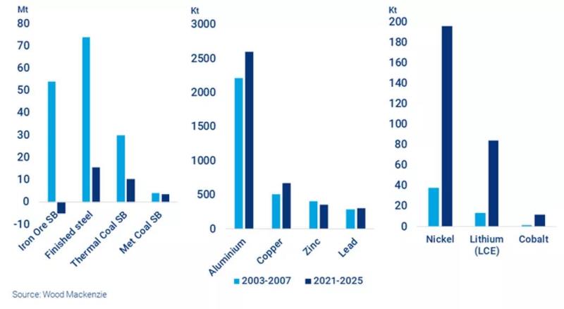 鋁、銅、鎳、鋰和鈷的絕對增長都將超過上個(gè)超級周期。