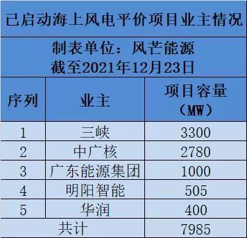 在這12個(gè)項(xiàng)目中,三峽、中廣核、廣東發(fā)展集團(tuán)總項(xiàng)目容量均超1GW。